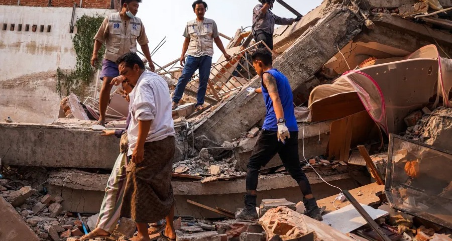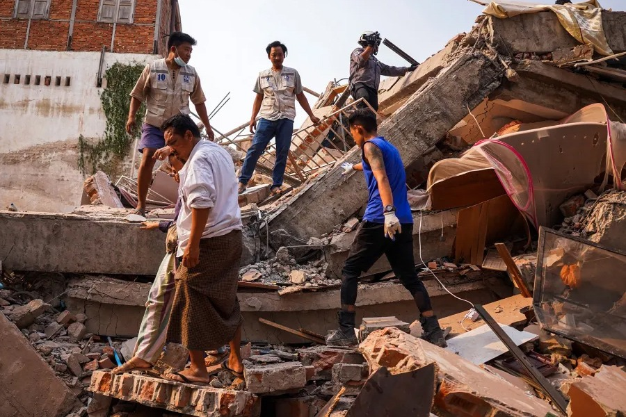 Hampir 5.000 orang terluka dan ratusan orang dilaporkan hilang, sebagiannya di bawah puing-puing dalam gempa 28 Maret 2025 lalu yang melanda Myanmar dan Thailand. (foto TH)